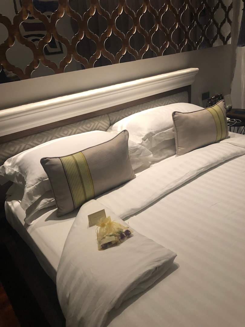 Am Abend mit einer kleinen Geste auf dem Bett