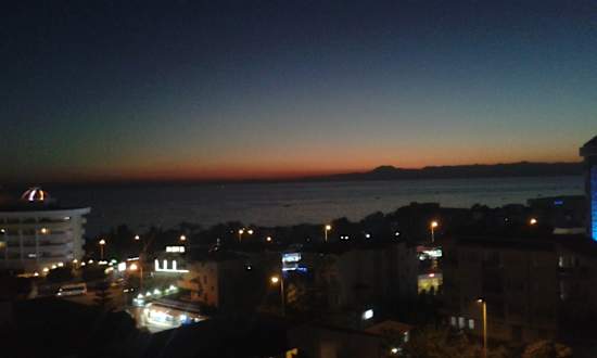 Vom Treppenhaus der Blick aufs Meer mit Sonnenuntergang