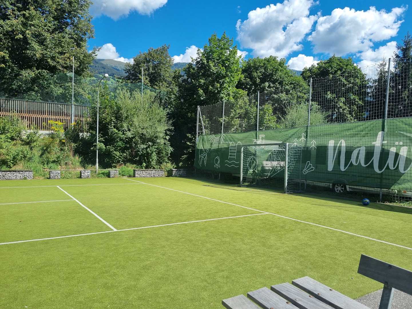 Der "Sportplatz" mit Kunstrasen in der prallen Sonne - nicht sehr ansprechend....