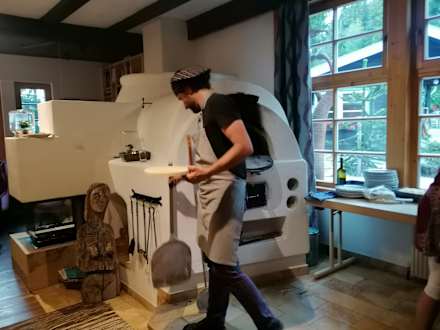 Pizza Abend, Zubereitung am großen Ofen