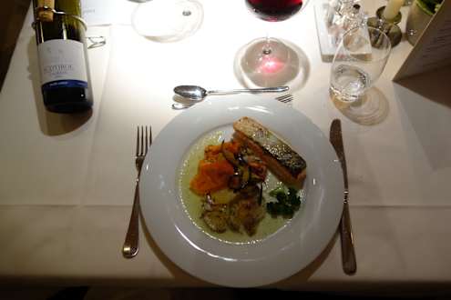 Lachs mit Kartoffelgratin und Gemüse