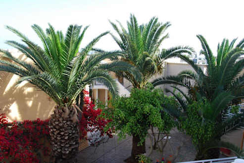 Ein Blick vom Balkon des Zimmers 299 auf die Hotelanlage.