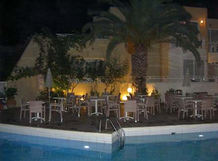 Pool und Innenhof am Abend