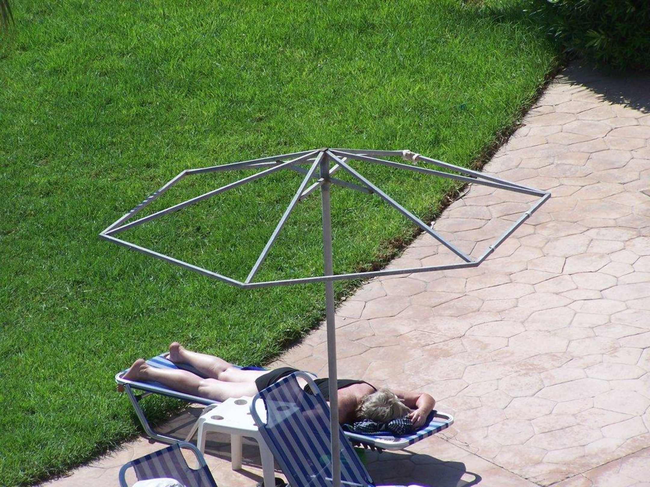 Kaputte SchirmeKein schöner Anblick, die Schirmdächer sollten schnellstens wieder hergestellt werden!