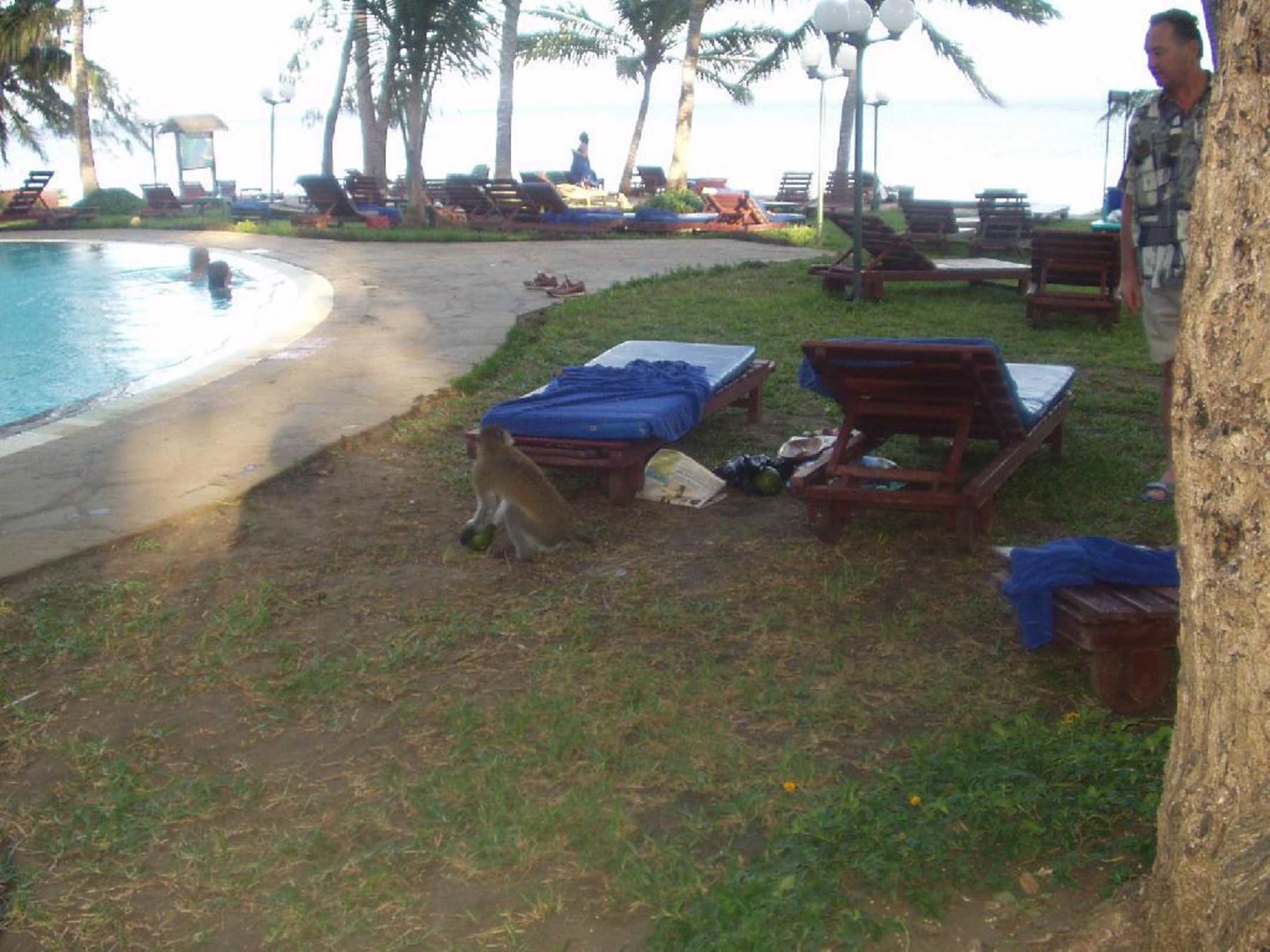 AffendiebEin Affe hat gerade eine Frucht aus der schwarzen Plstiktüte gestohlen. Das passiert aber nicht nur im Neptune Beach.