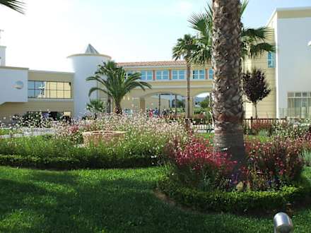 Gartenblick auf Übergang zum Restaurant Proteas