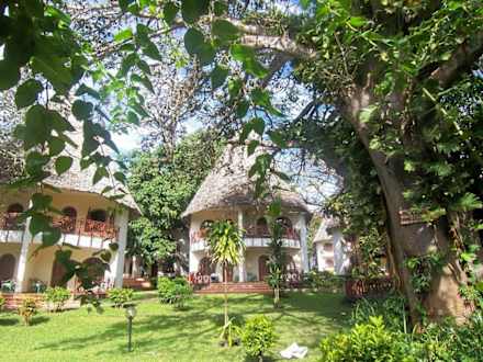 Die Gartenanlage ist echt ein Traum. Rechts - ein gigantischer Bananenbrotbaum!