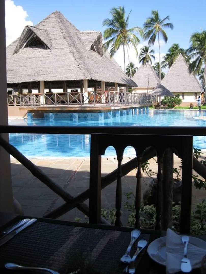 Blick von Restaurant zum Pool bzw. zur Bar Neptune Pwani Beach Resort & Spa