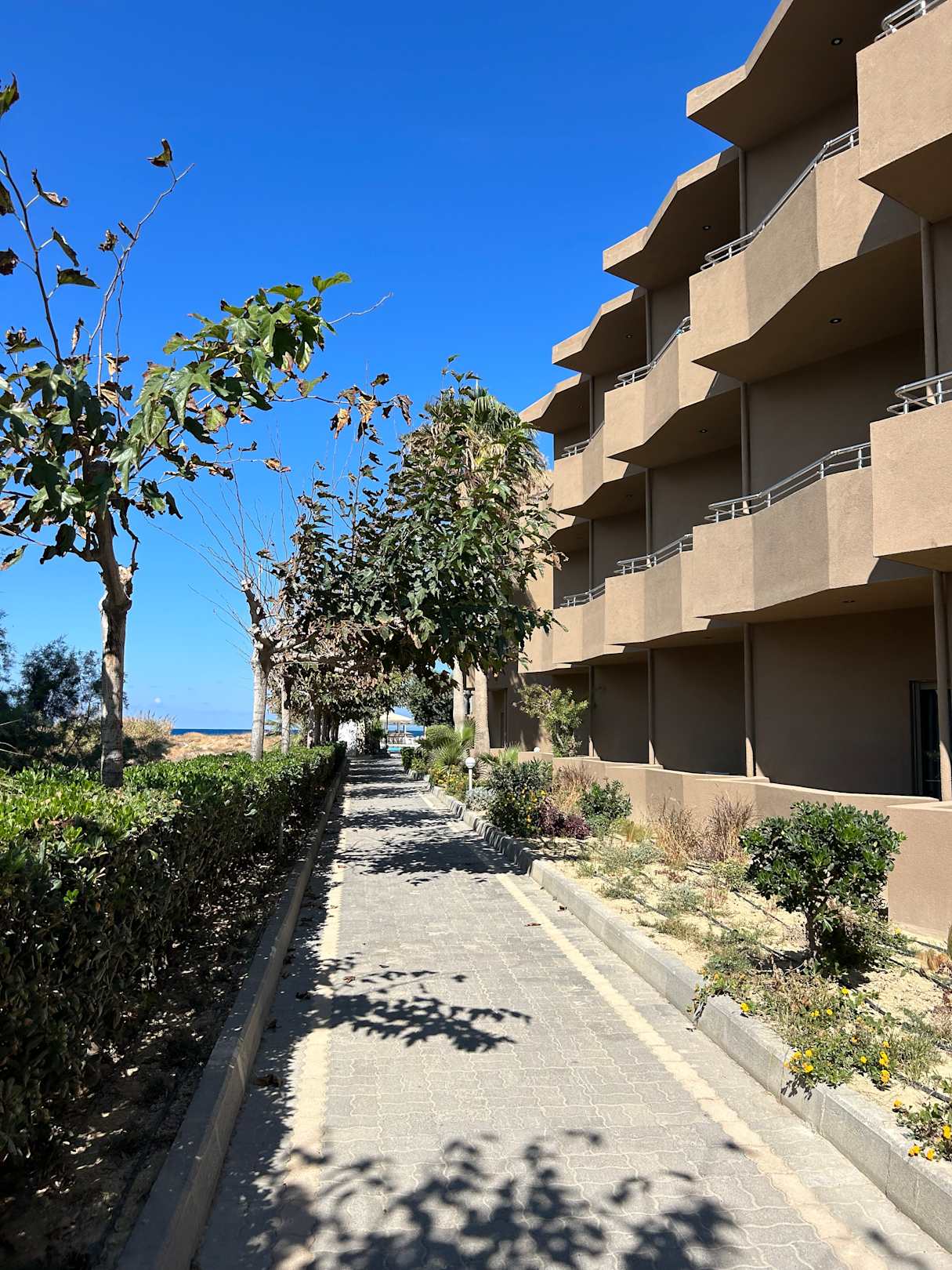 Weg zum Pool (rechts die Doppelzimmer mit seitl. Meerblick und reoviert)