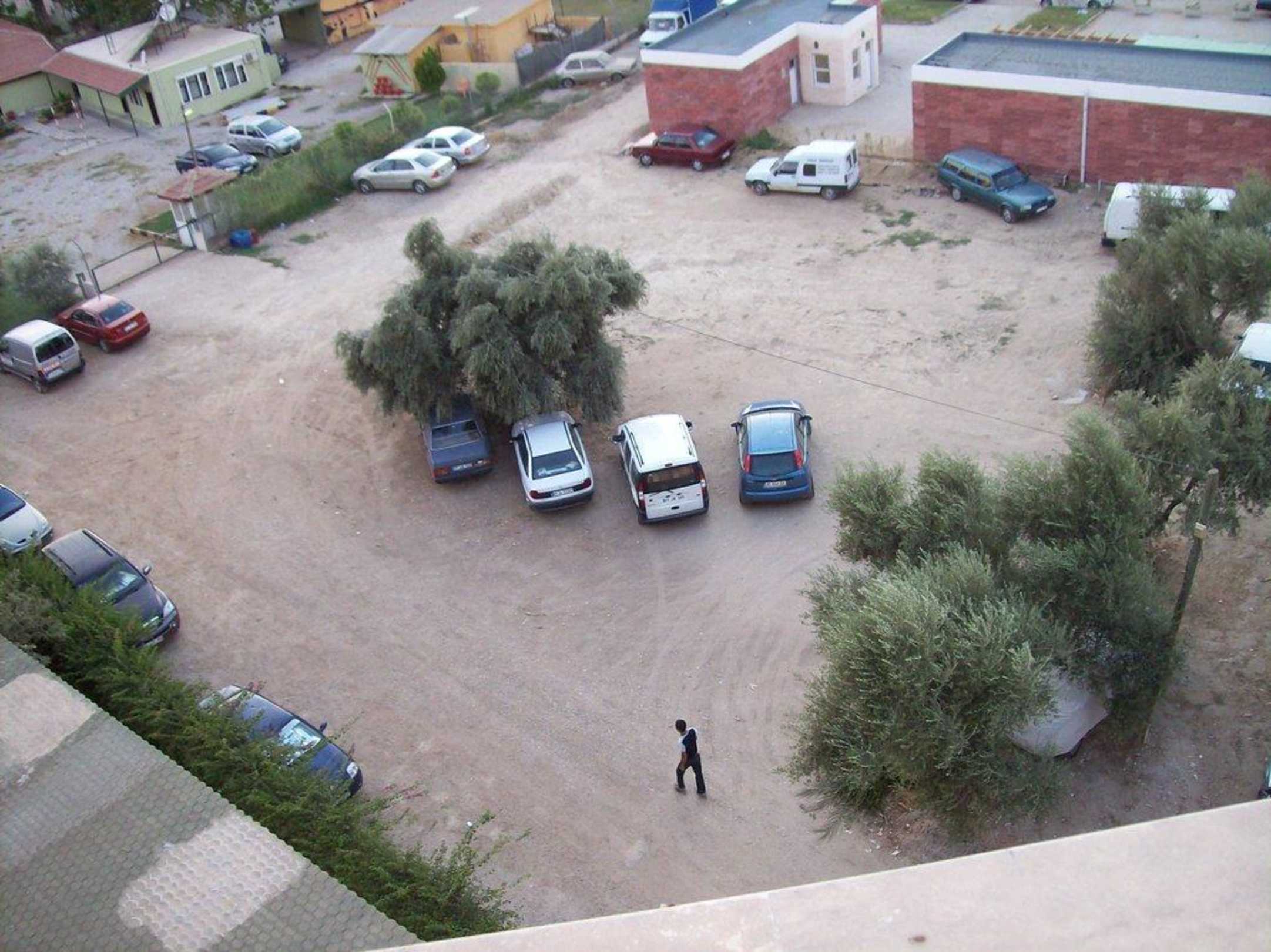 Ausblick vom Hoteldach auf den etwas trostlosen Parkplatz
