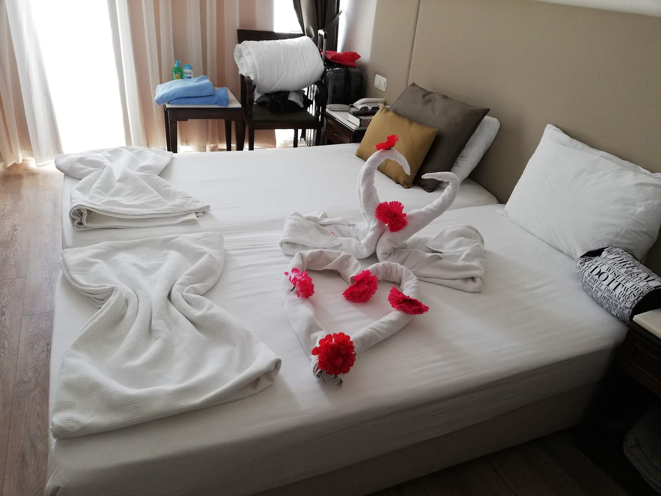 Neu renoviertes Zimmer im 5.Sock. Zur Begrüßung mit netter Deko.