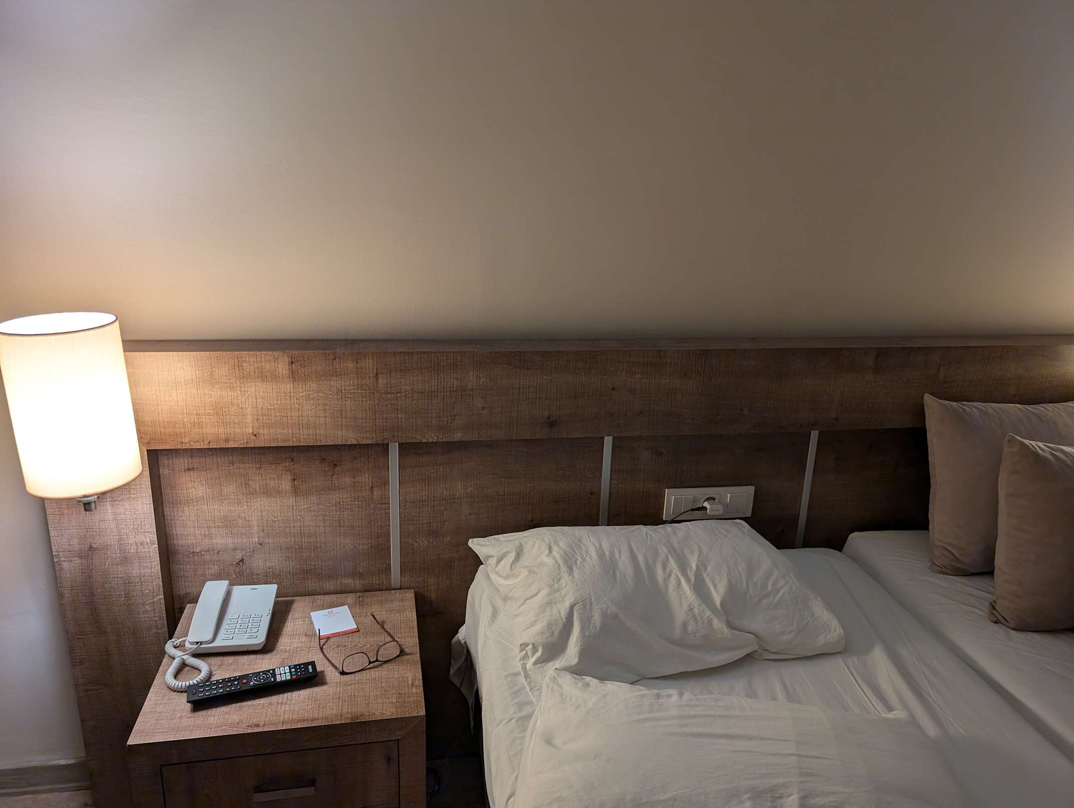 Steckdose und Lichtschalter am Bett ,hinter den Kissen unpraktisch und die einzige am Bett