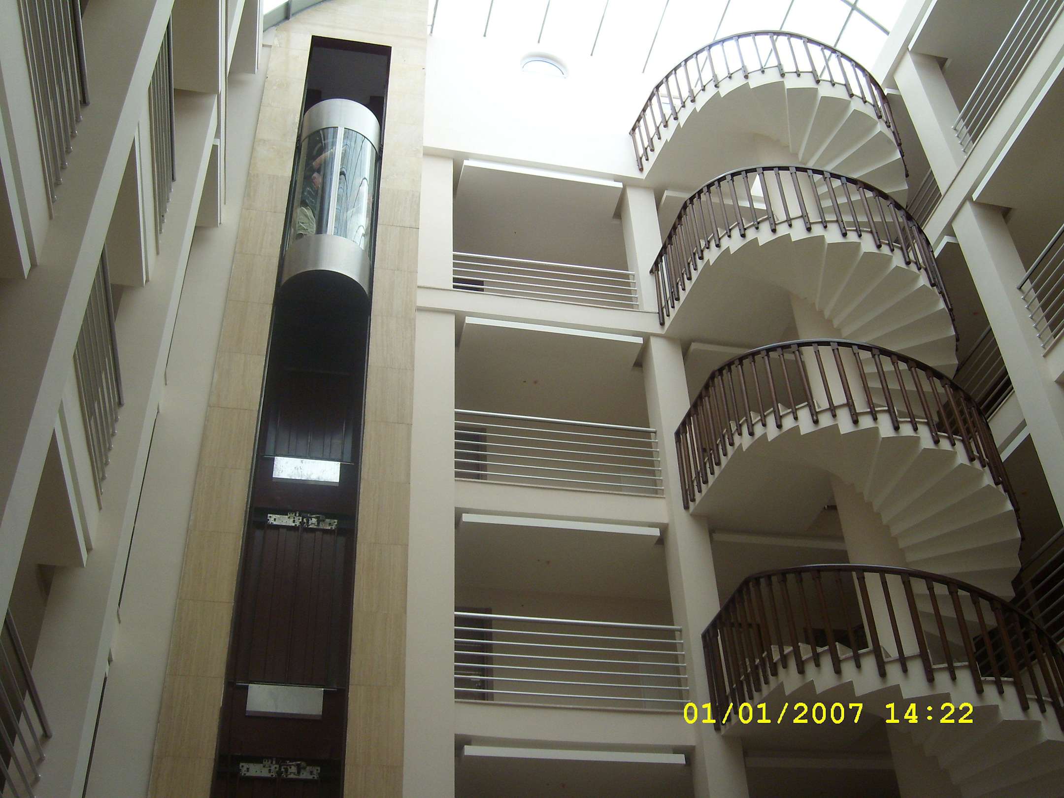 Fahrstuhl und Treppe in der Lobby zu den Zimmern