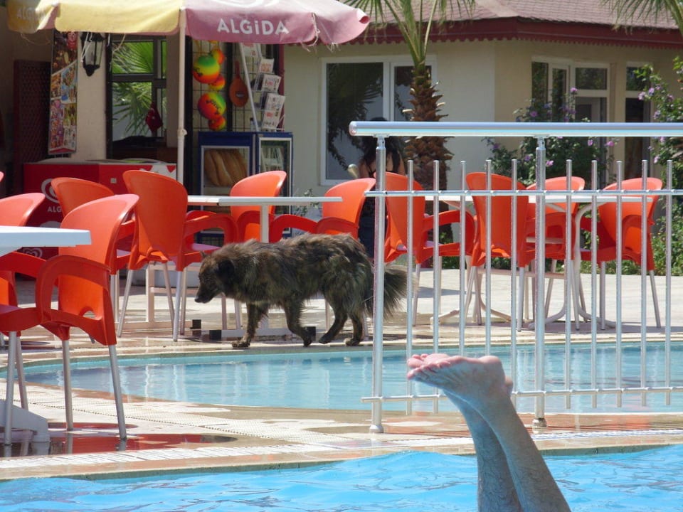 Wilder Hund am Pool