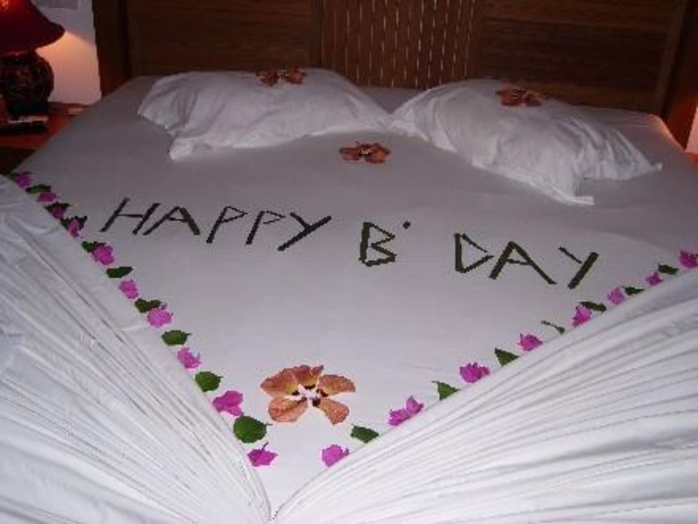 Glückwünsche zum GeburtstagSpezielle Bettgestaltung am Geburtstag mit Glückwunschbrief von der Gästebetreuung.