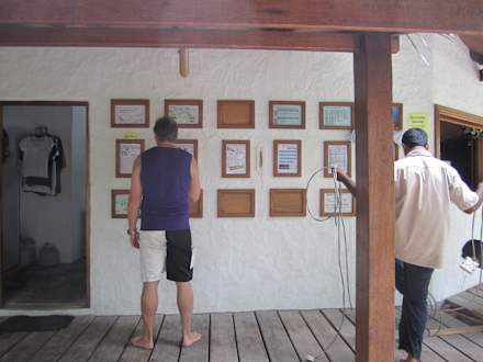 Tauchschule mit Wand der Tauchspots