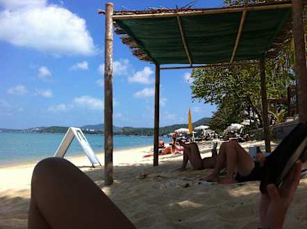 Unter Paldachin 1/2liegen unten 2tem Paldachin im Sand - Blick nach rechts. Es ist sehr wenig los !