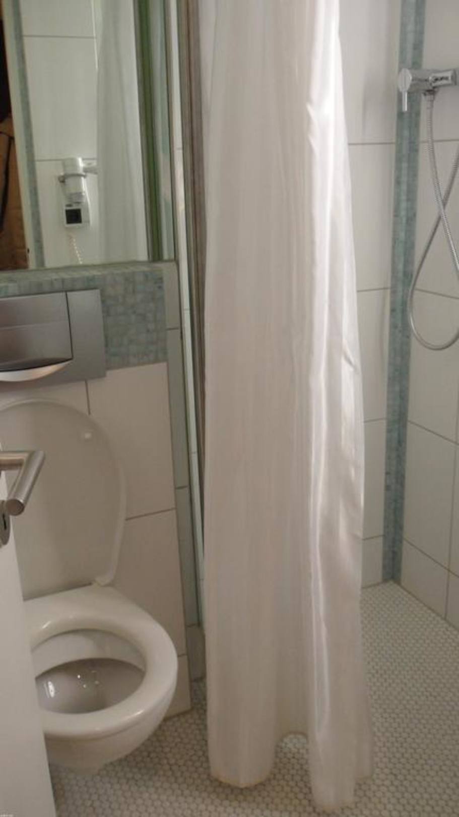 WC und Duschbereich des kleinen Badezimmers