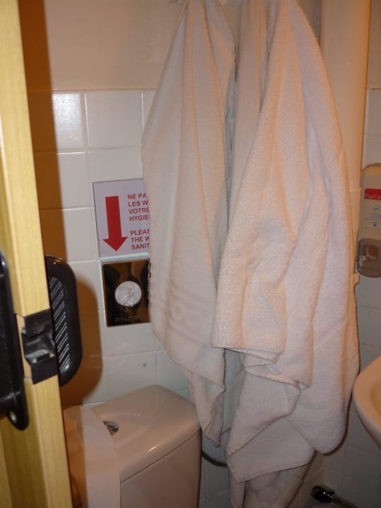 Badetücher hingen über Toilettenschüssel