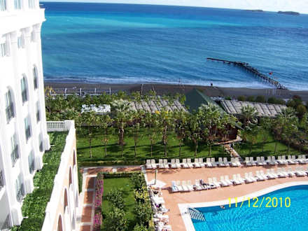 Aussichtvom Zimmer über den beheizten Außenpool zum meer