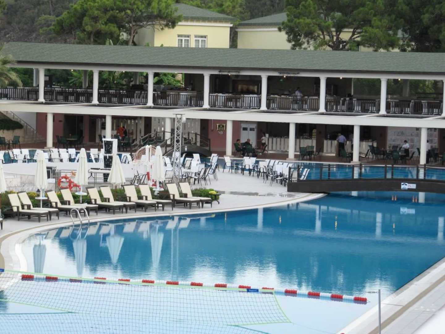 Dahinter unten die "Turquoise Pool Bar" und darüber das "Mediterranes Snack-Restaurant".