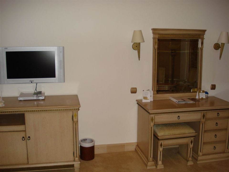 Flachbild-TV und Schminkspiegel im Zimmer