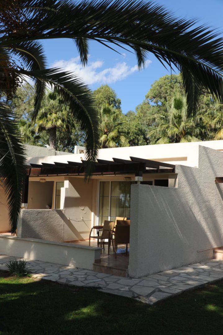 Blick auf einen Beach Suite Bungalow (Nr. 10) vom Garten aus