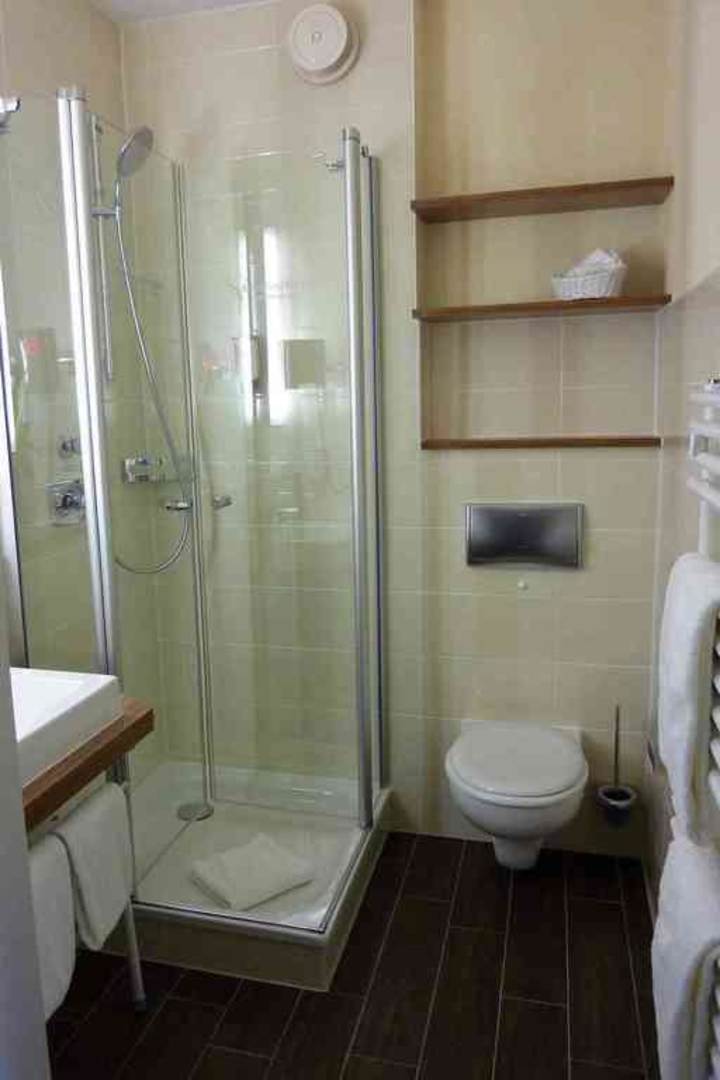 Zimmer 115: Blick ins neuwertige Duschbad
