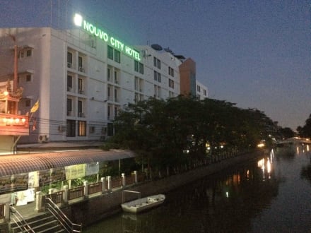 Rückseite des Hotels vom Kanal aus