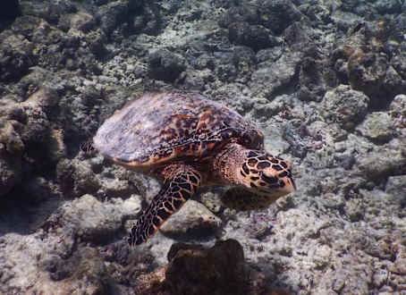Es gibt mehrere Schildkröten am Hausriff, Eindruck vom Hausriff hier ersichtlich