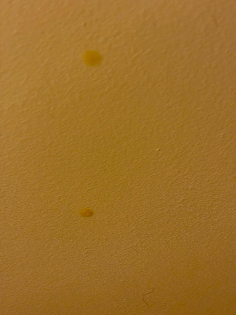 Decke der Dusche. Schleimflecke und ein fremdes Haar.
