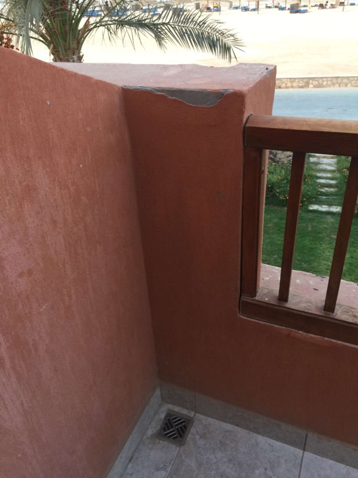 Abplatzungen des Putzes an vielen Stellen in der Anlage