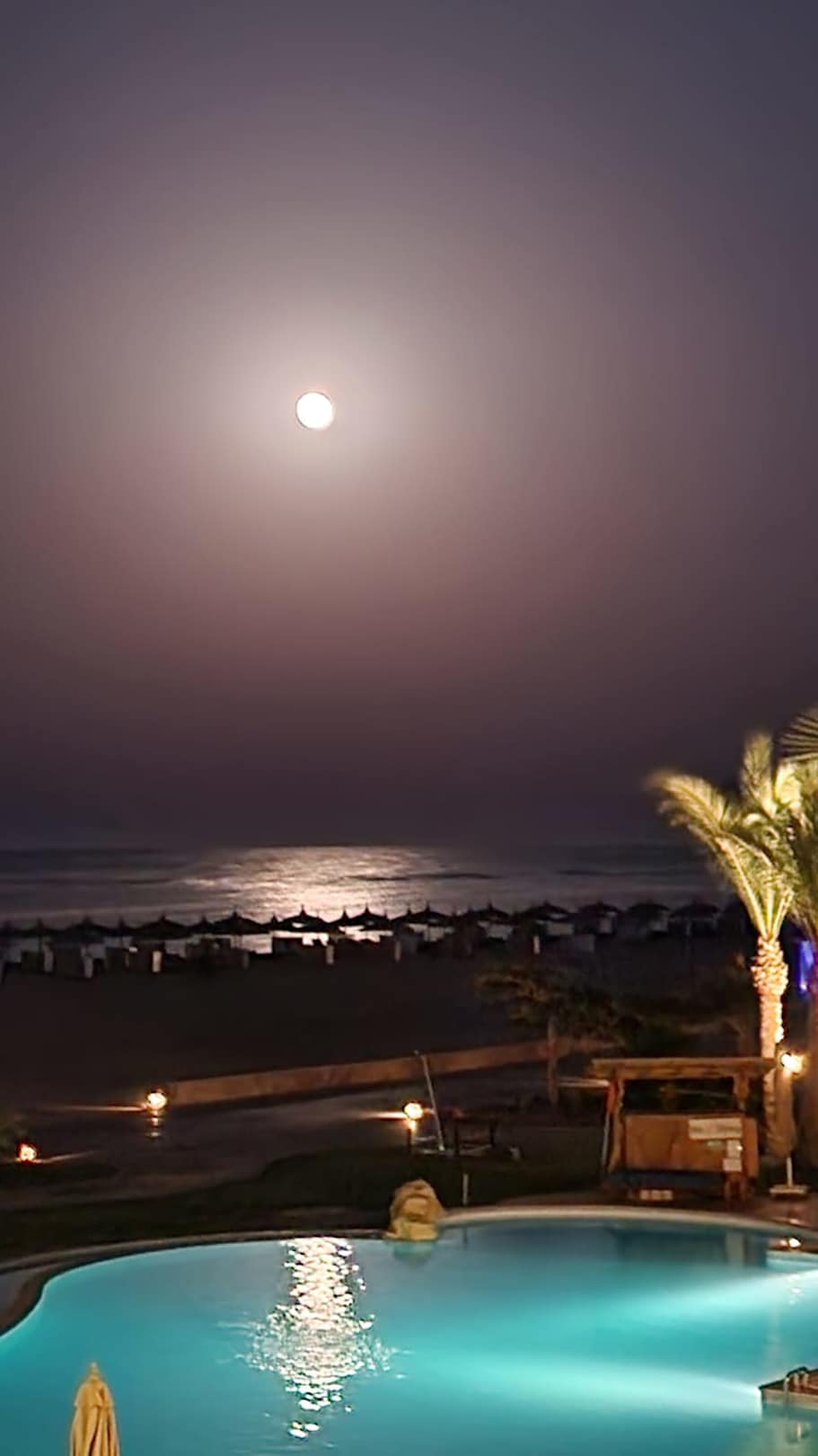 Ausblick nachts auf das kleine Pool und das Meer