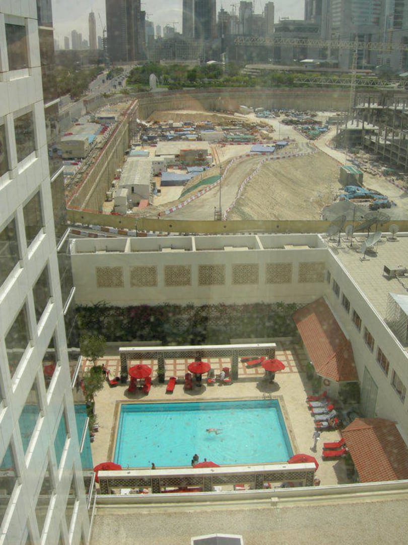 Blick vom Zimmer auf Pool und BaustelleWir waren den ganzen Tag unterwegs und hörten und sahen nichts hiervon, keine Beeinträchtigung. Das war 2009.