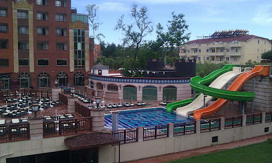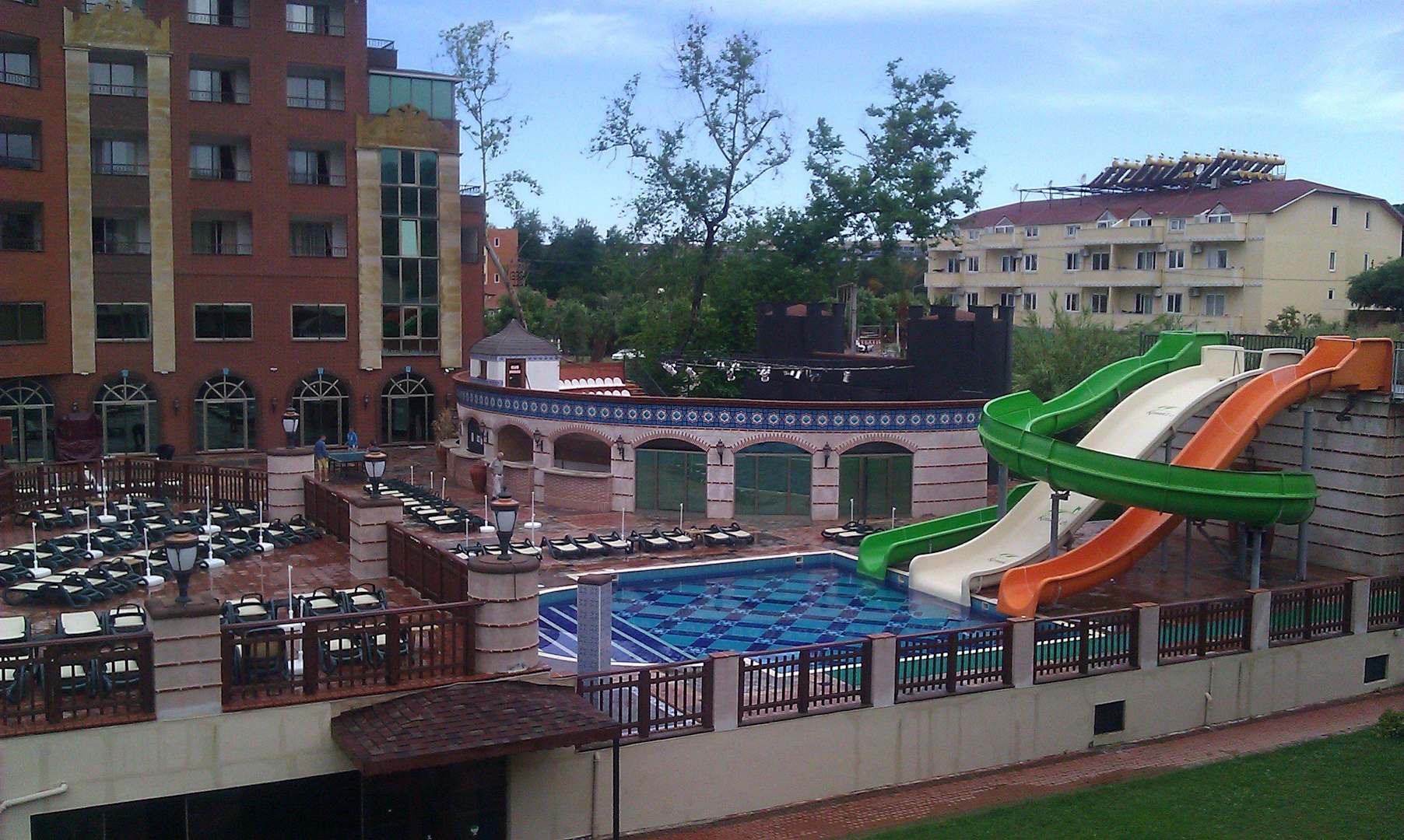 Rutschen und Amphietheater im Hintergrung