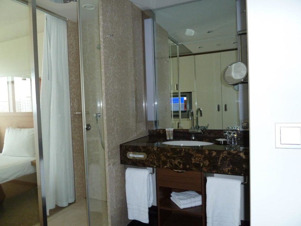 Badezimmer mit gläserner Dusche