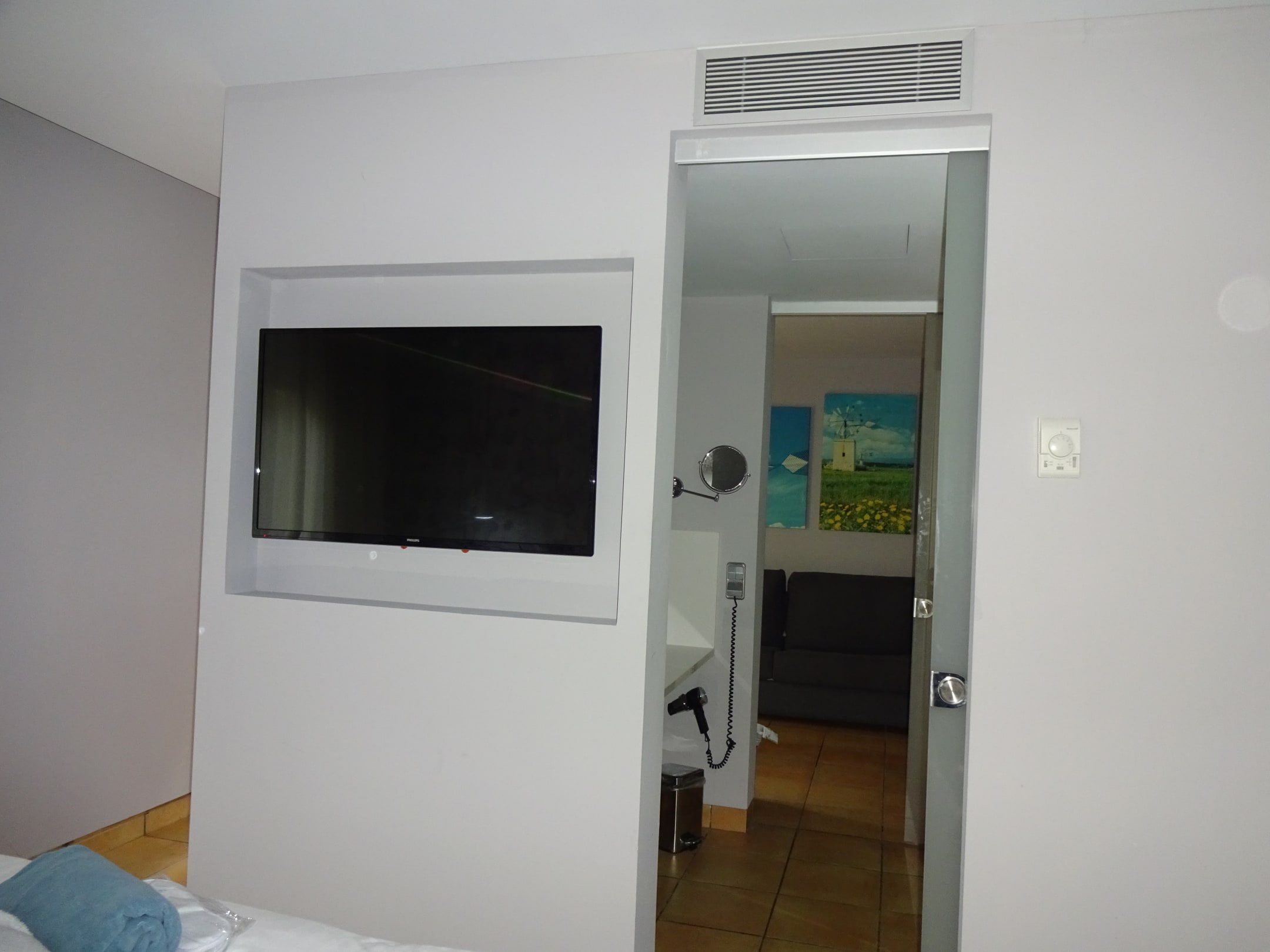 Schlafzimmer- vom Bett- ein Fernseher