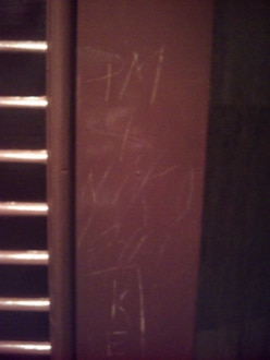 Damentoiletteeine der Türen der Damentoilette, die anderen Türen sehen auch so aus, erinnert irgendwie am Bahnhofstoilette.