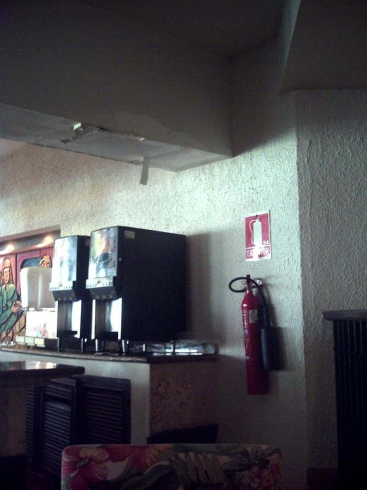 Schadstelle befindet sich direkt über der Bar, an der die Getränke ausgeschenkt werden, der Holzschrank unten ist teilweise schon weggefault, sah 14 Tage lang so aus.