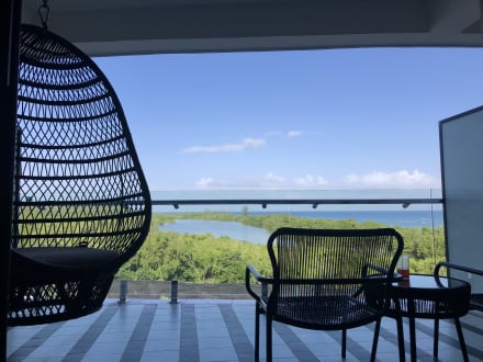 Ausblick von meinem Balkon mit gemütlichem Hängesessel