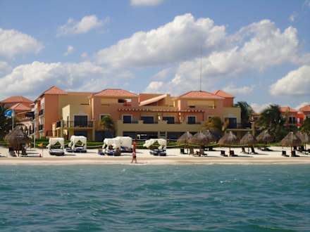 Der Hotelstrand vom Motorboot aus