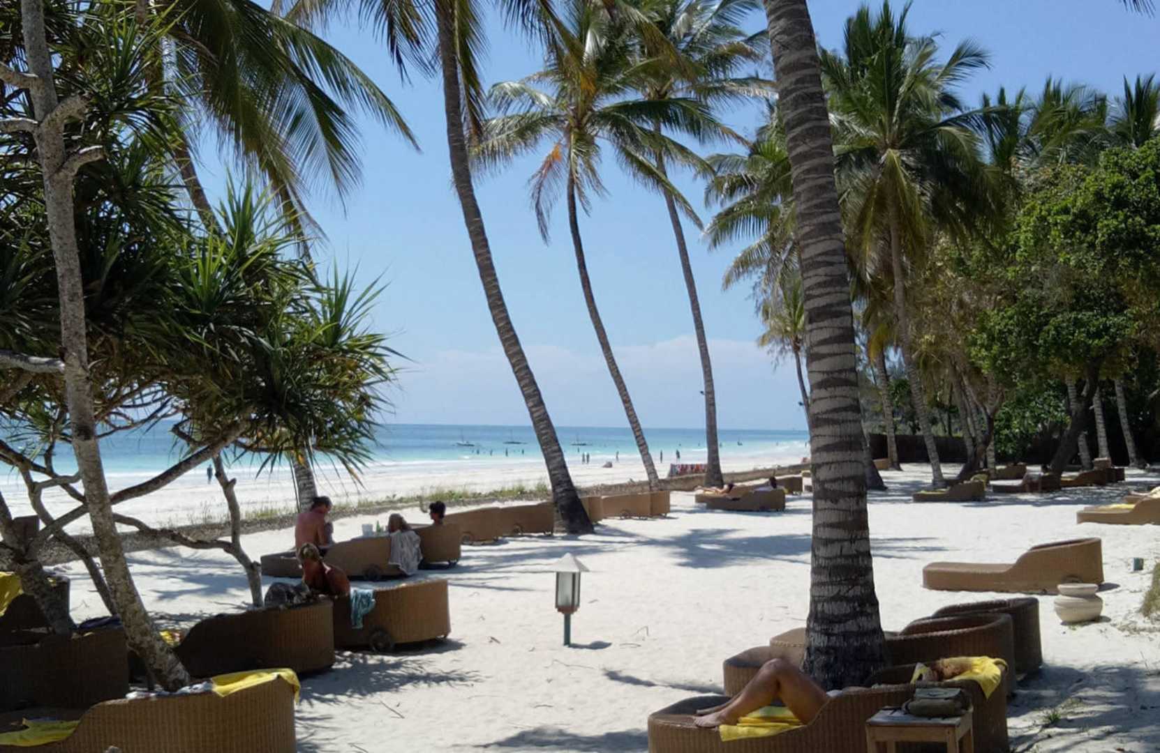 Sunbeds under the palm trees