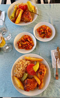 Lecker Abendessen mit frischen Gemüse und Kräutern aus dem eigenen Garten. Sehr gutes Essen fanden wir.