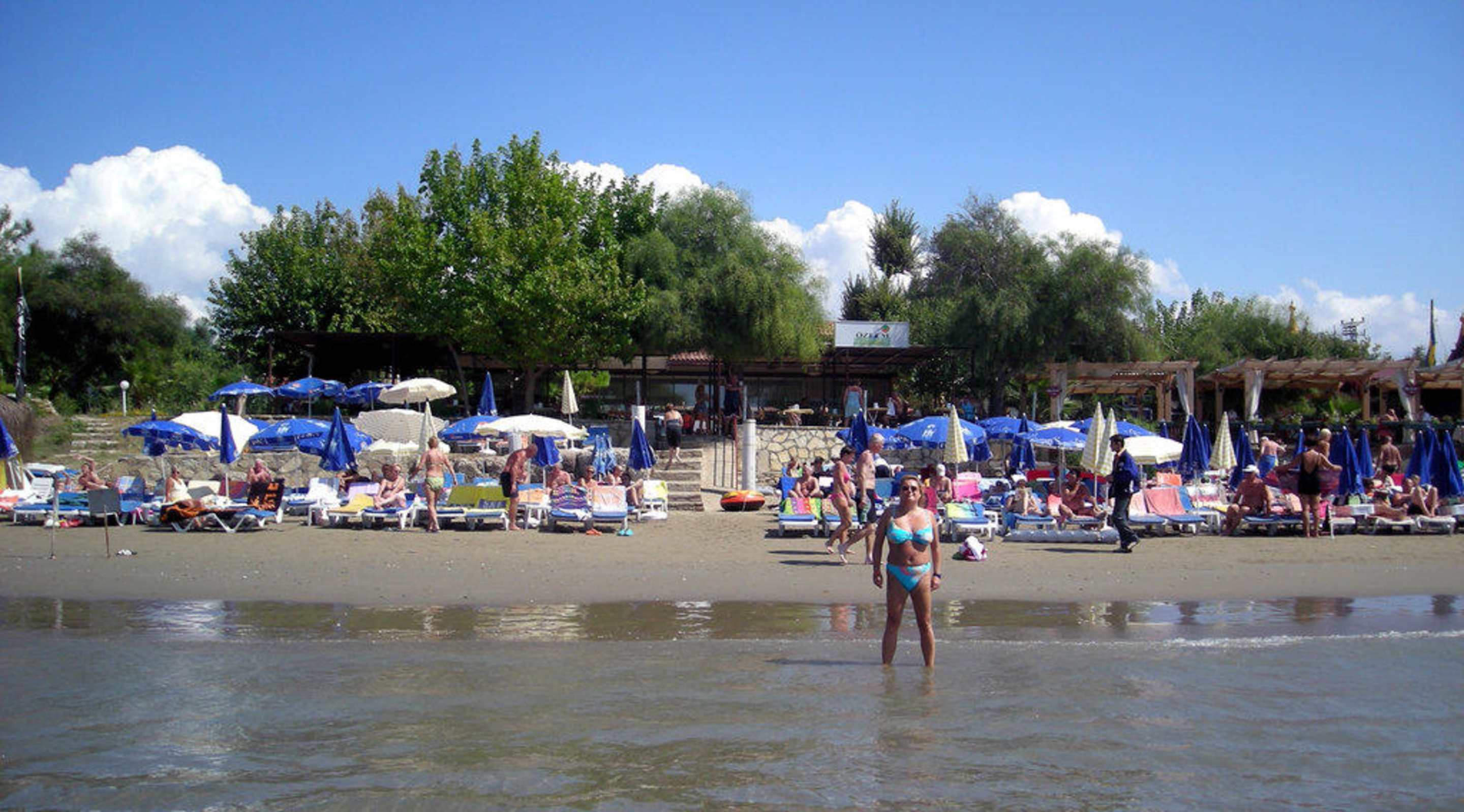 Blick auf den Hotelstrand. Einer der schönsten bei Side. Leider auch sehr klein!