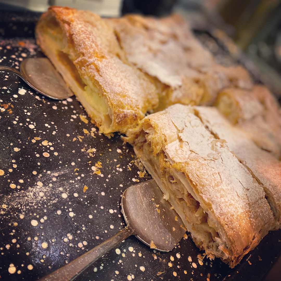 Hausgemachter Topfen & Apfelstrudel.