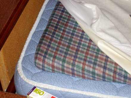 Auflagen die gebracht wurden weil man bei den Matratzen die Federn spürte Auflagen ca 3 cm Konnte trotzdem nicht schlafen da sie zu kurz waren