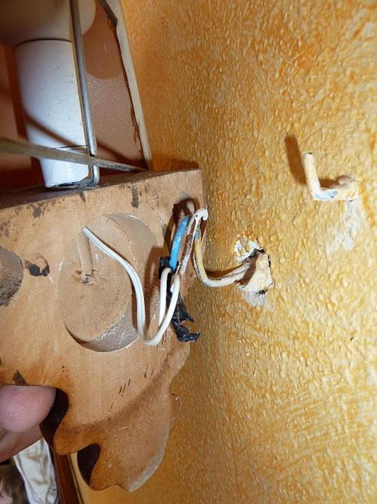 Das Bild zeigt die "Verkabelung" der vorhandenen Wandlampen. Südländische Lockerheit in allen Ehren, aber ein Mindestmaß an elektrischer Sicherheit sollte dann doch sein...