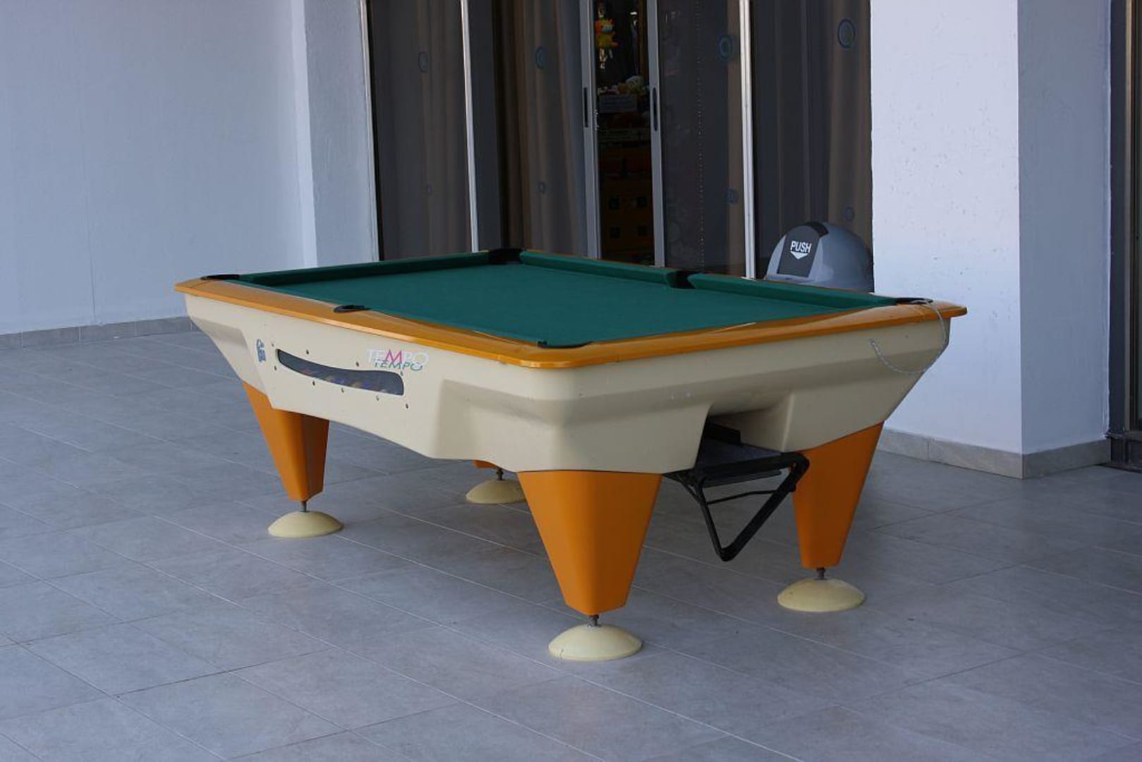 Im Hotel gibt es einen Raum mit Spielautomaten. Geht man aus diesem Raum herus findet man diesen Billiardtisch. Er ist in der Nähe der Pools.