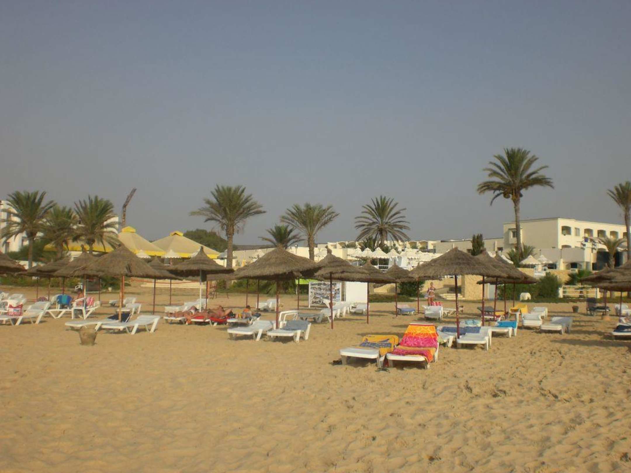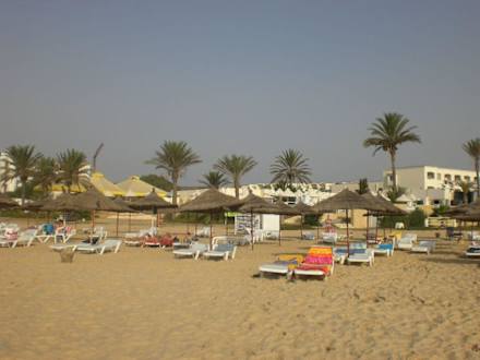 Blick vom Meer auf das Hotel.
