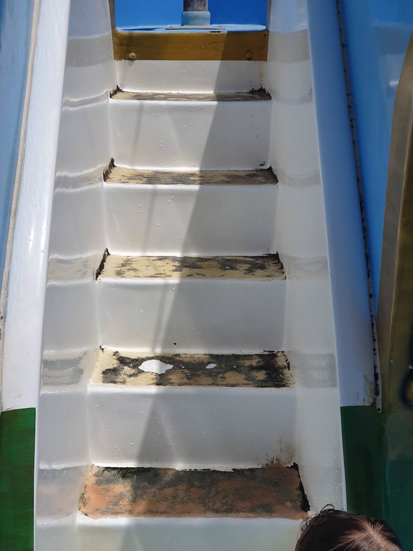 SonstigesSchimmel und nicht Rutschfest auf Treppen von Piratenschiffrutsche im Babypoolbereich